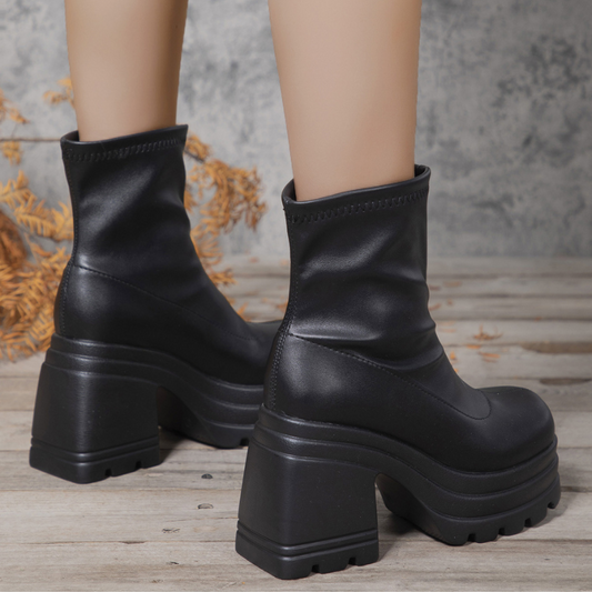 Bottines femme talon noir plateforme style unique et tendance-Anais